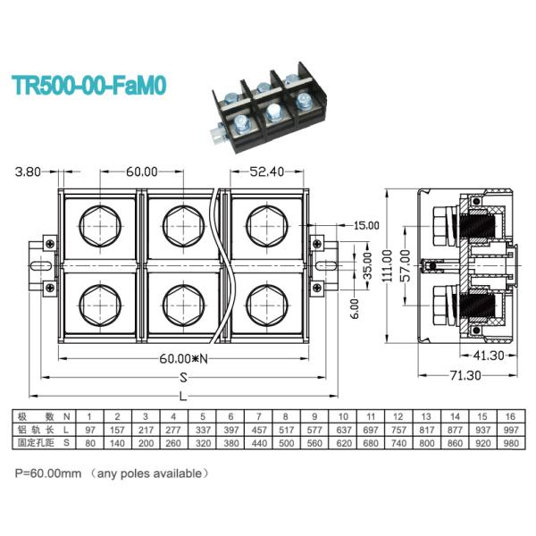 High Current Power Terminal Blocks Connectors Pitch 60.00mm 600V 500A any pole available